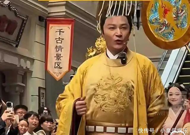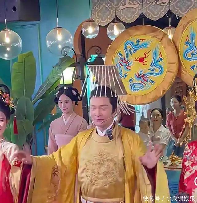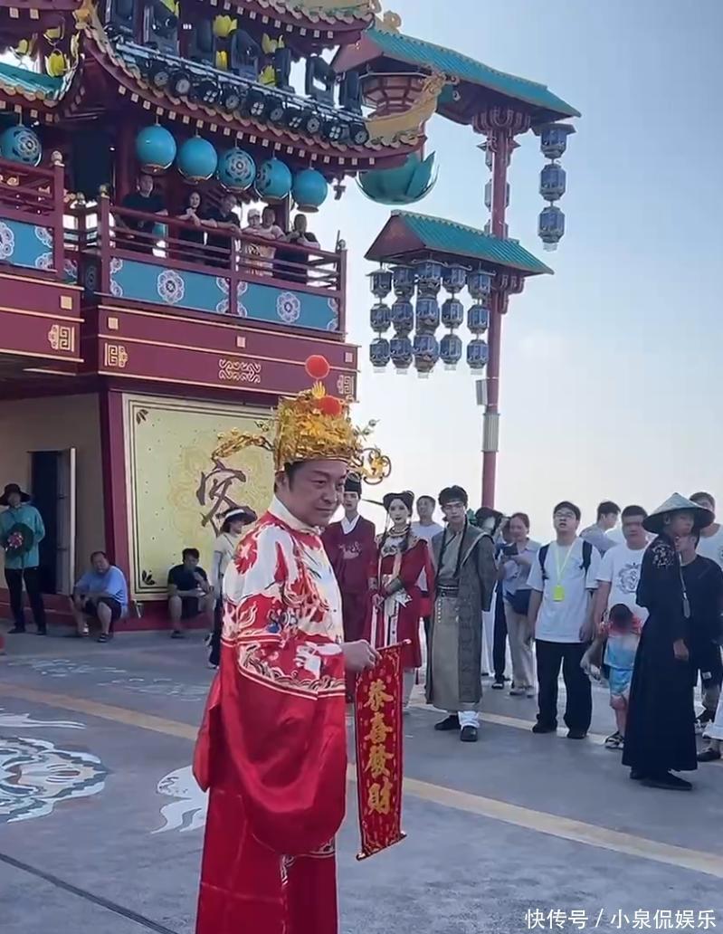 穿着龙袍的郑国霖,完全没有明星的架子,对游客们的提问应答得挺自然,甚至还和工作人员一块儿合唱跳舞,玩得特别开心,完全放松了自己。